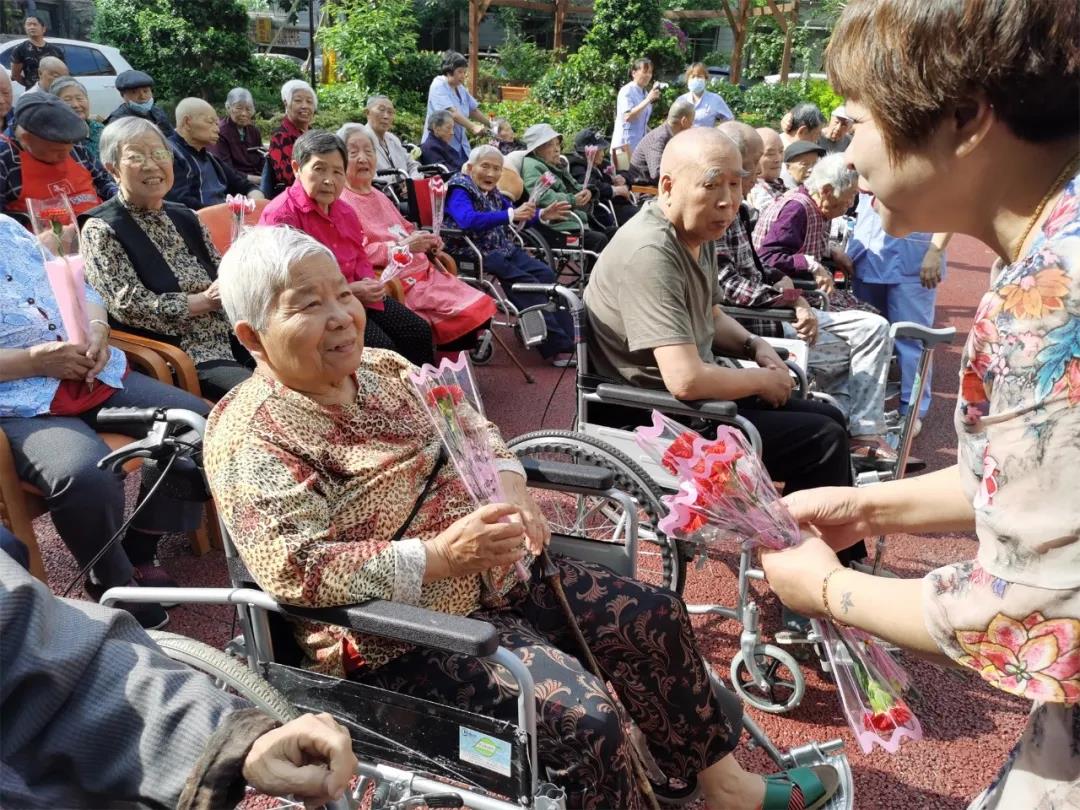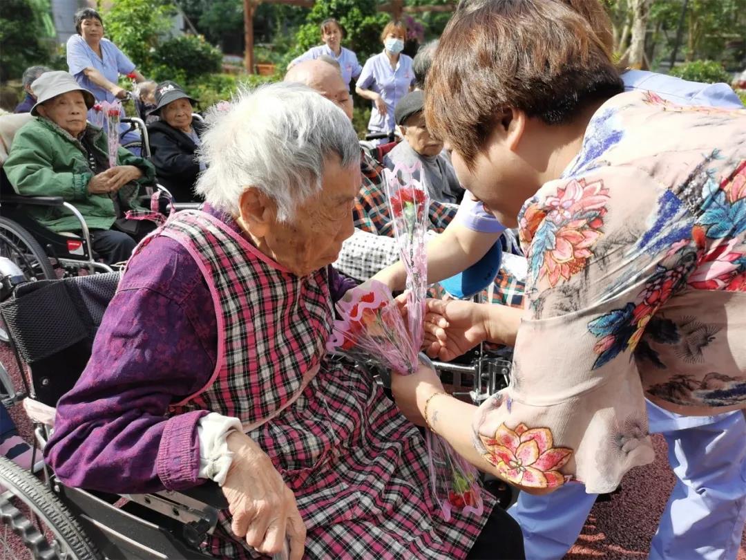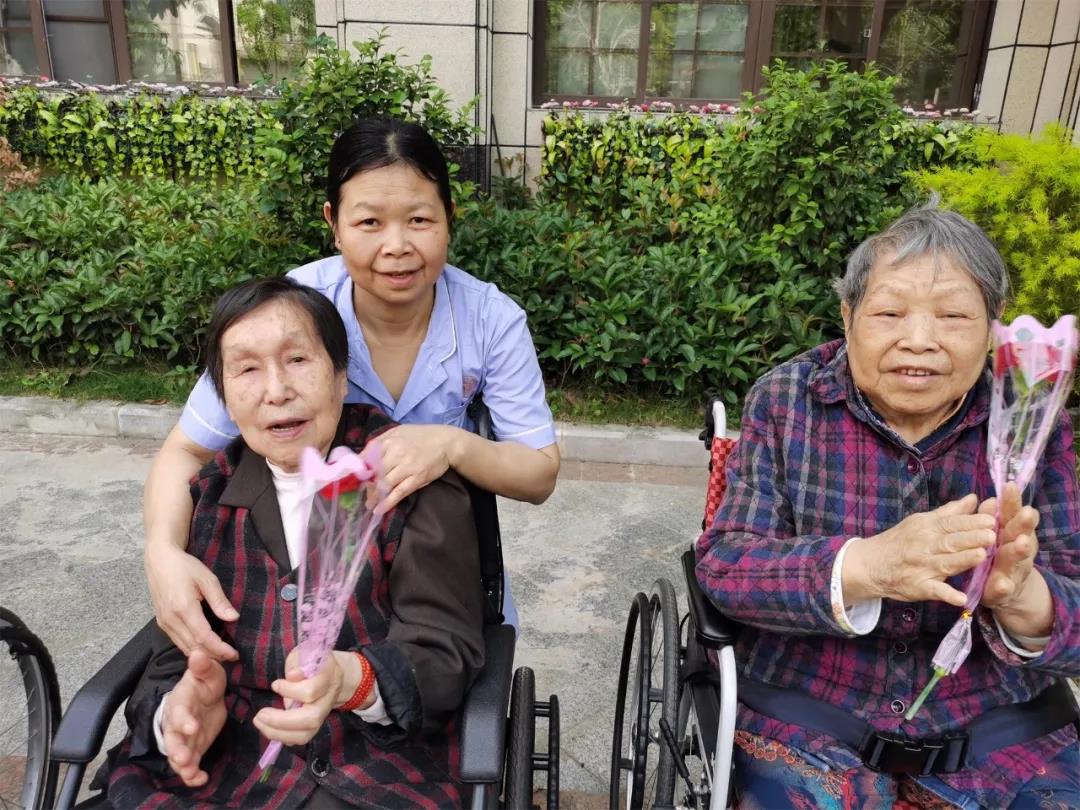 一朵盛開的康乃馨,寄予了濃濃的關愛。歡樂慈祥的笑容,讓平日里安靜詳和的養(yǎng)老院,洋溢著快樂、溫馨。