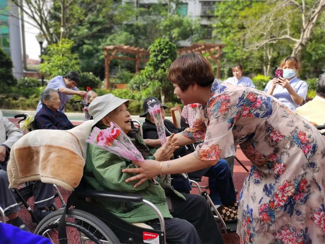 在母親節(jié)當天,我院為表達對偉大母親的致敬和祝愿,也為了致敬我院的各位老人及母親,我院護理部主任粟亞軍為每位偉大的母親派發(fā)節(jié)日祝福并送上了節(jié)日鮮花,各位母親喜笑顏開!