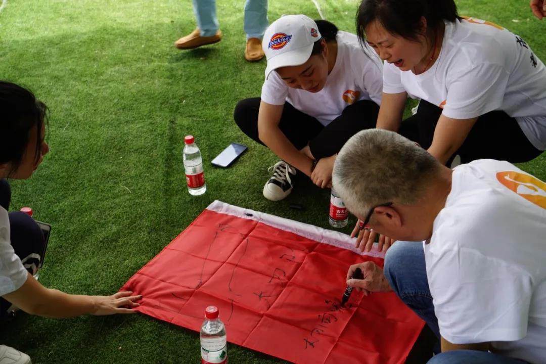 在親手制作隊(duì)旗環(huán)節(jié),大家都積極參與每隊(duì)可謂竭盡全力的“設(shè)計(jì)”著自己的隊(duì)旗,隊(duì)旗=凝聚向心力、鞏固團(tuán)隊(duì)協(xié)作的精神。
