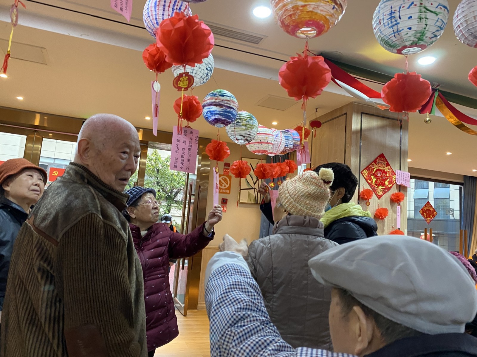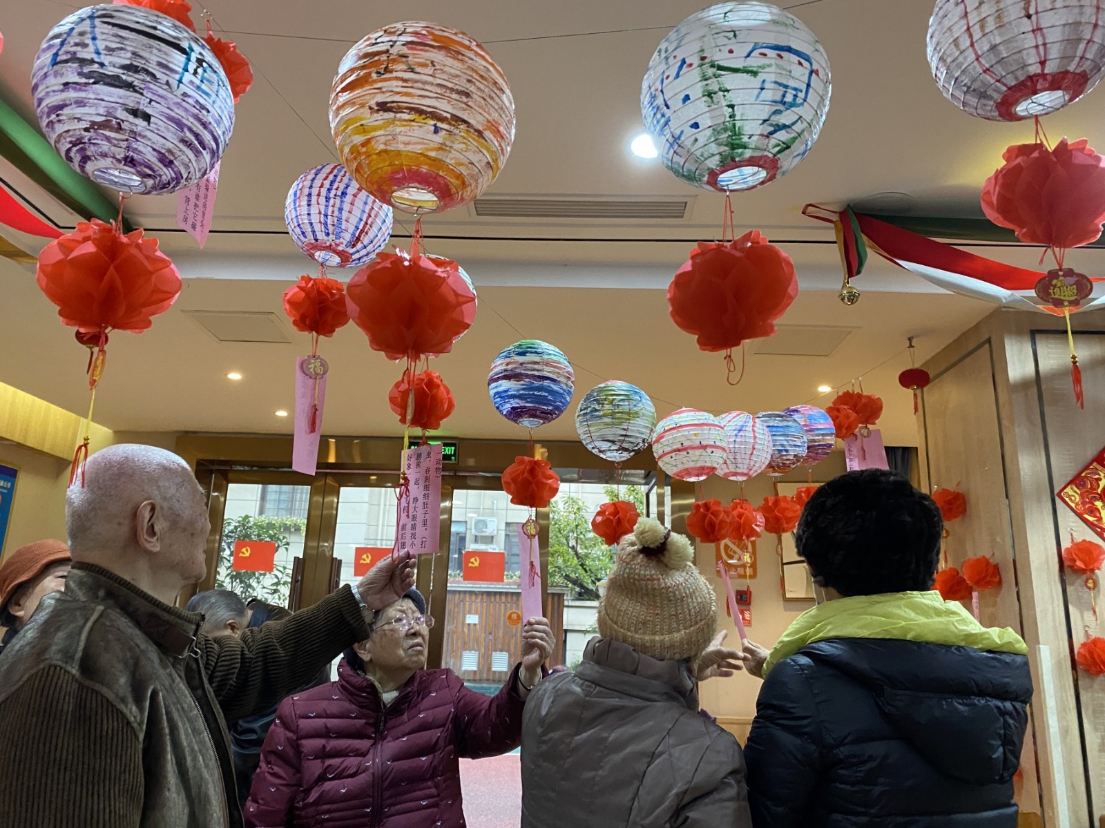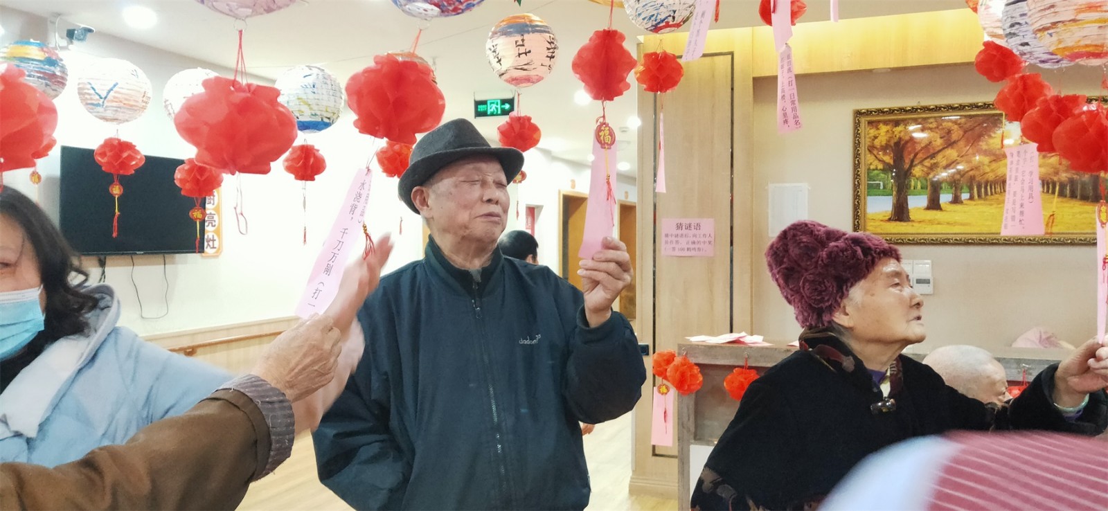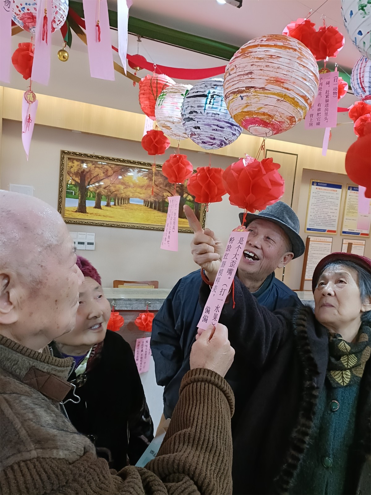 猜燈謎游戲中,工作人員將寫有謎題的字條掛在燈籠上。謎題涉及內(nèi)容豐富,有通俗易懂的趣味猜題,也有考驗見識的傳統(tǒng)文化謎題,讓猜謎游戲既有娛樂性,又具知識性,充分調(diào)動著老人的思維能動性。