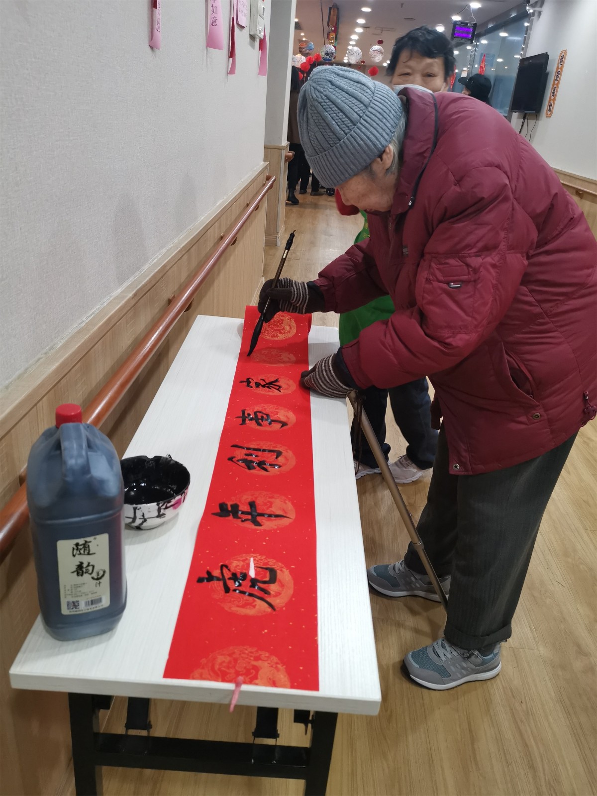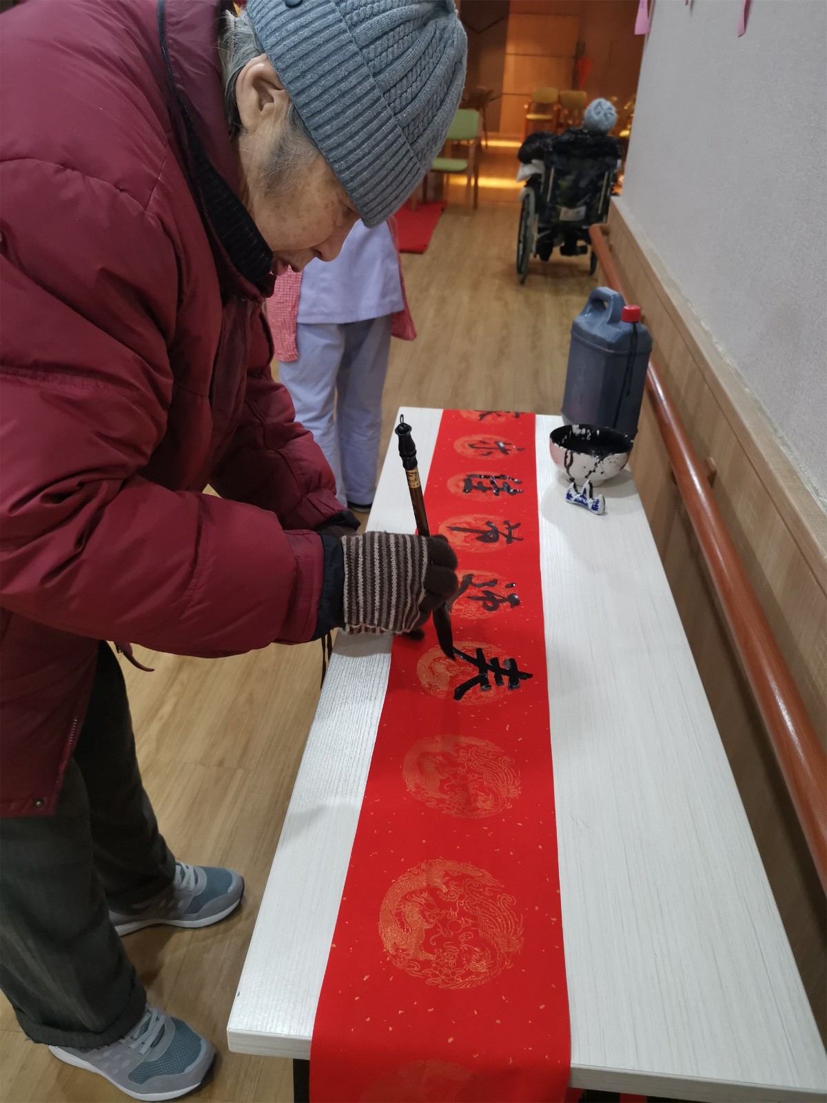一幅幅充滿喜慶吉祥寓意的春聯(lián),一張張喜氣洋洋的“?!弊?為年味十足的養(yǎng)老院更添喜慶。